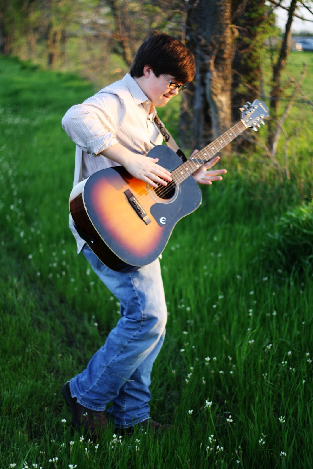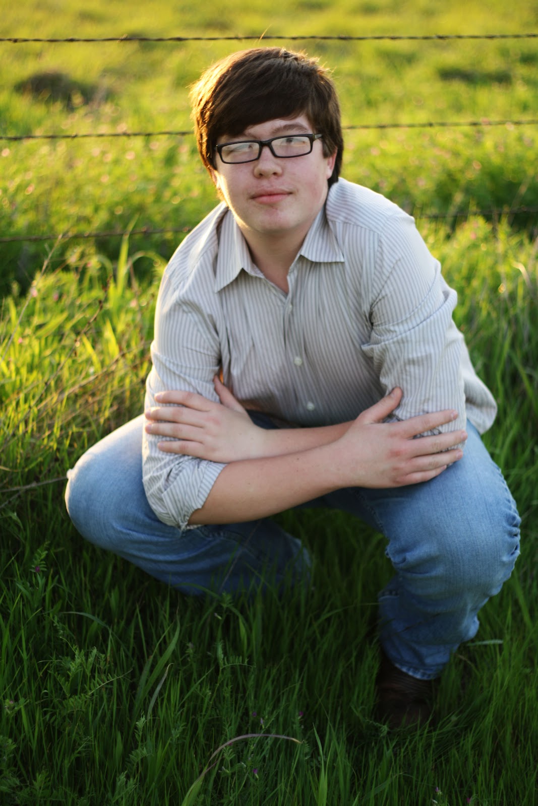 We went out a few days ago and took some "freshman" pictures for his birthday (if you're in my family, you get pictures every grade, uh possibly every month, or...day. Needless to say, I like my camera. A lot.). One of the great things about Trey is that he is so easy-going, that means he also doesn't care about being in pictures. Whenever I point the camera at him, he doesn't shy away: he faces it head on.