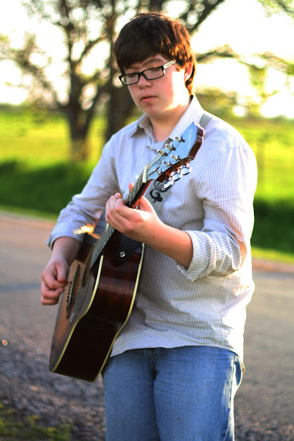 Trey loves his guitar. He loves playing the guitar. And he is really good at the guitar. Recently, we learned about this Contemporary Christian artist named Josh Wilson who plays the guitar really well. When Trey first heard Josh Wilson play an instrumental version of "It is Well," he has wanted to learn how to play that piece. Trey wasn't able to get around to the piece until he was asked to play his guitar for church. The problem (well, Trey thought it was a problem, ) was that he only had one month to learn how to play the piece. But he didn't let that deter him. :-)