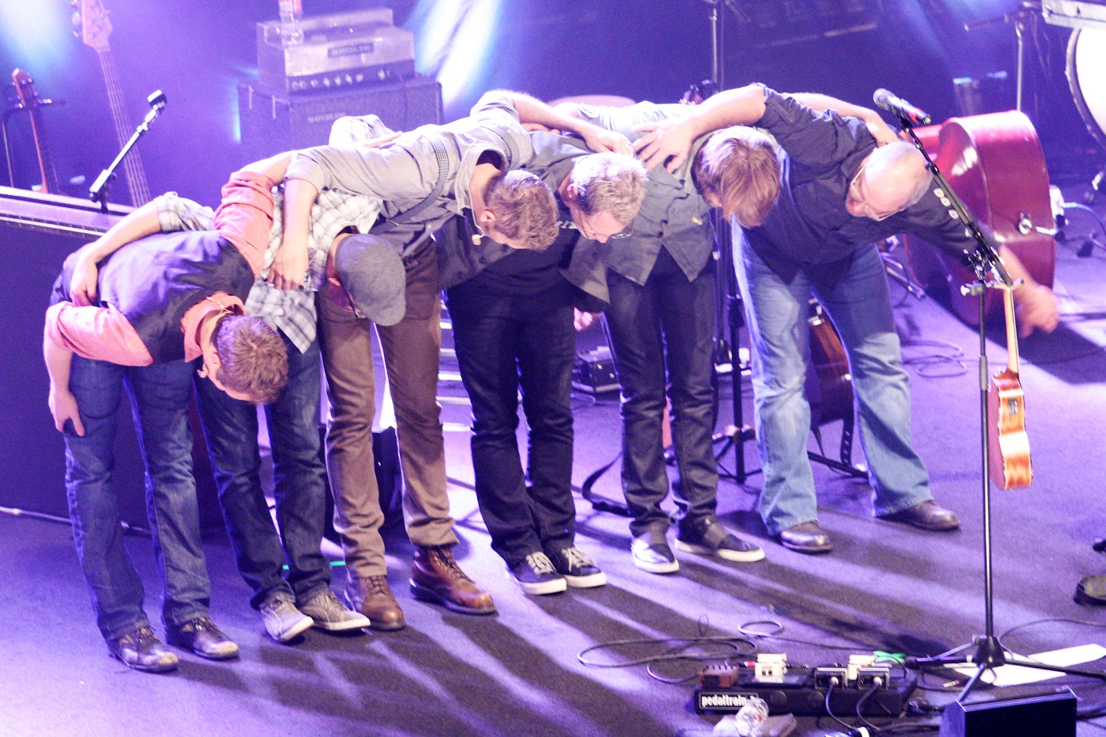 (from left to right) Andrew Peterson, Steven Curtis Chapman, Josh Wilson singing "Do Everything." |